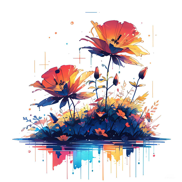 Prompt: Czerwone/złote maki, półprzezroczyste płatki, żyły, błyszczące, krople rosy, tło bokeh, anime, wyśrodkowane, podświetlenie, mokre na mokrej akwareli. Praca 1(1441) |